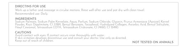 Exfoliante: rebosante de partículas de albaricoque naturales exfoliantes para eliminar suavemente las células muertas de la superficie, limpiar las impurezas y dejar los poros brillantes y limpios.