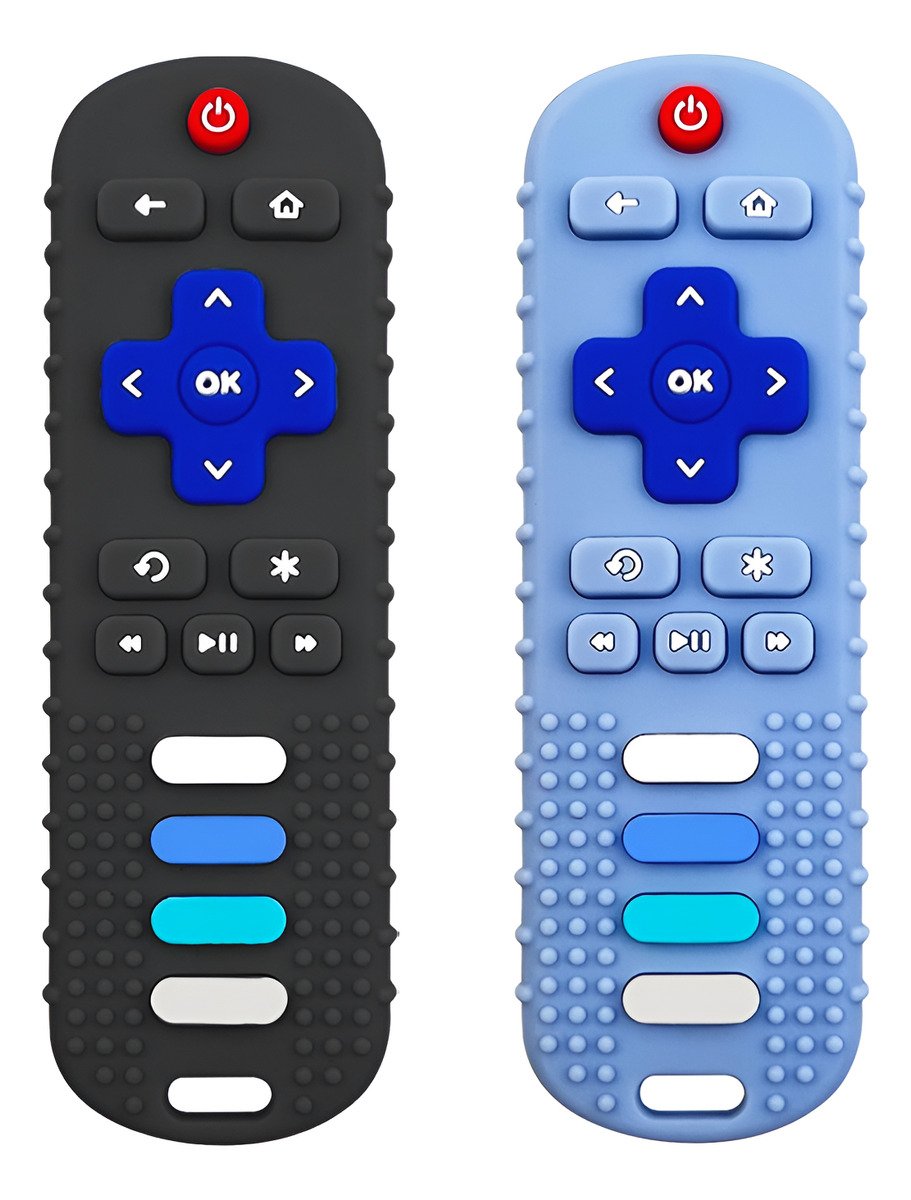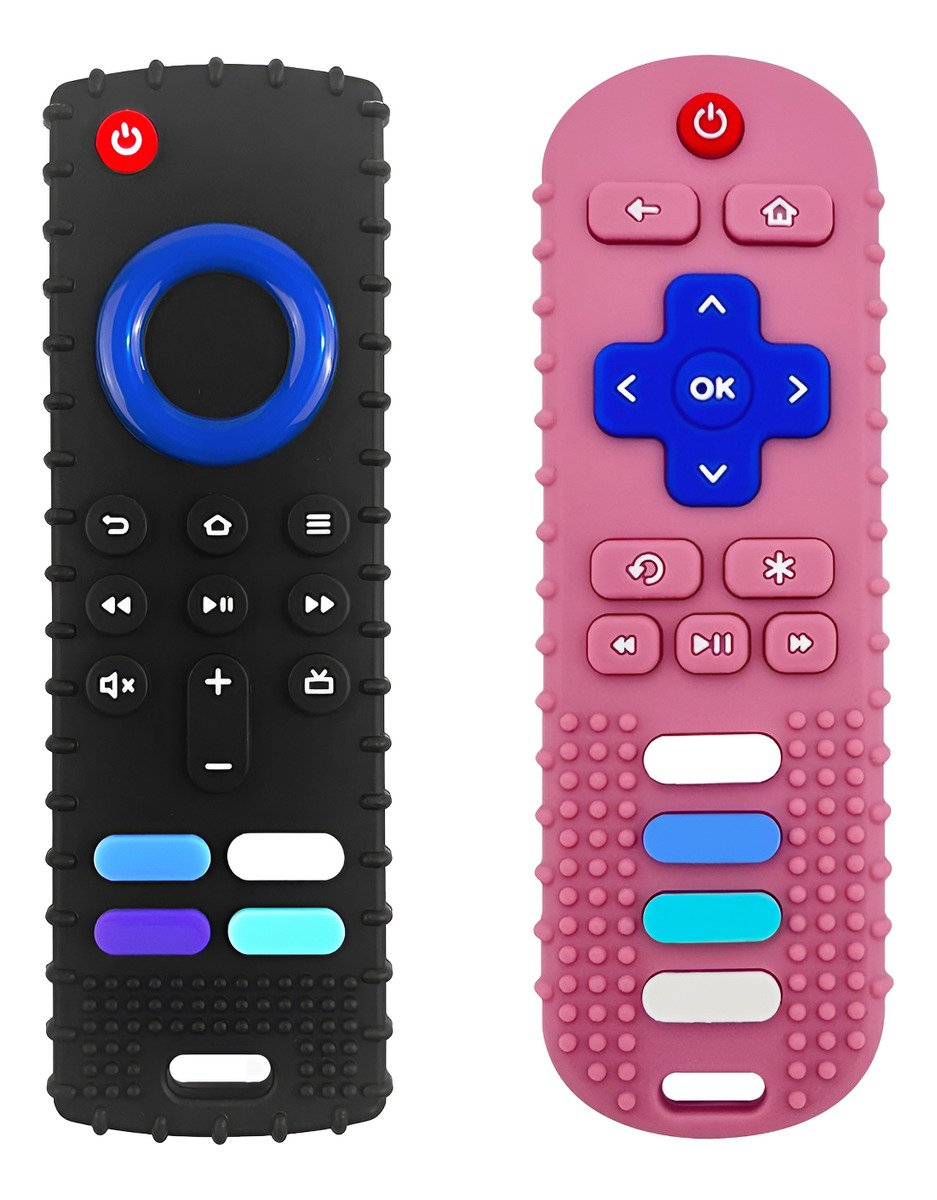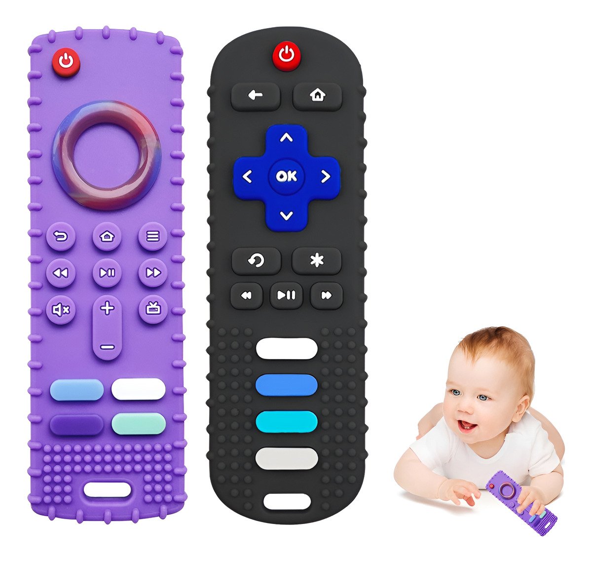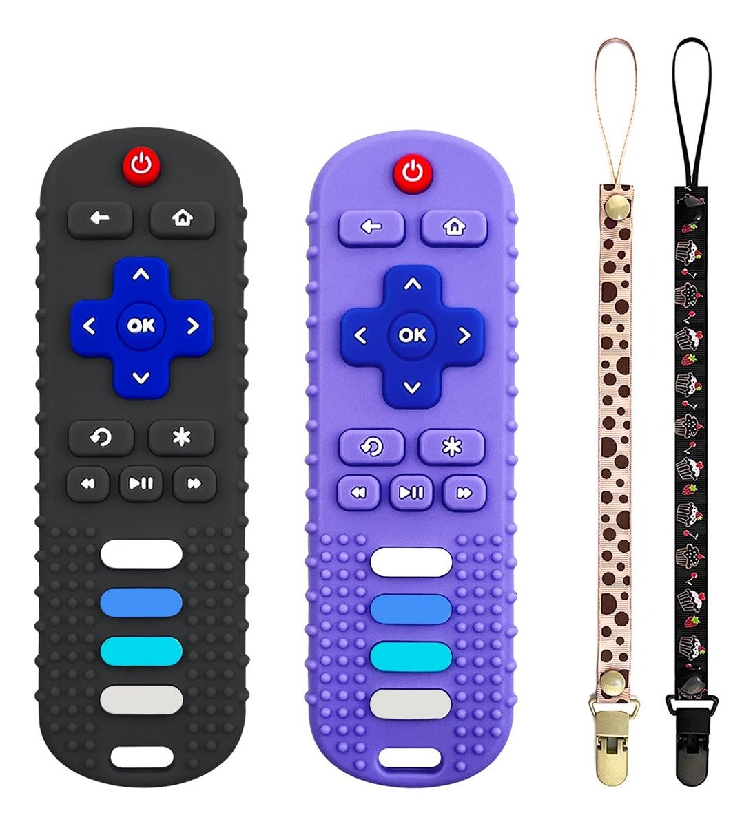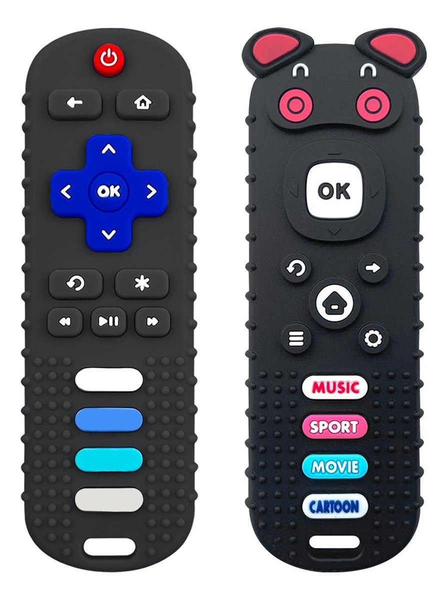 Mordedores De 2 Juguetes De Dentición De Silicona Para Bebés Color Negro Y Cerdo Negro Remotos De Tv