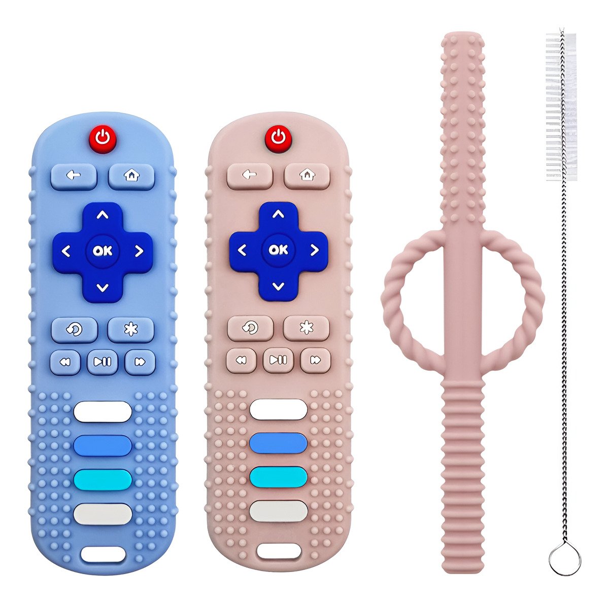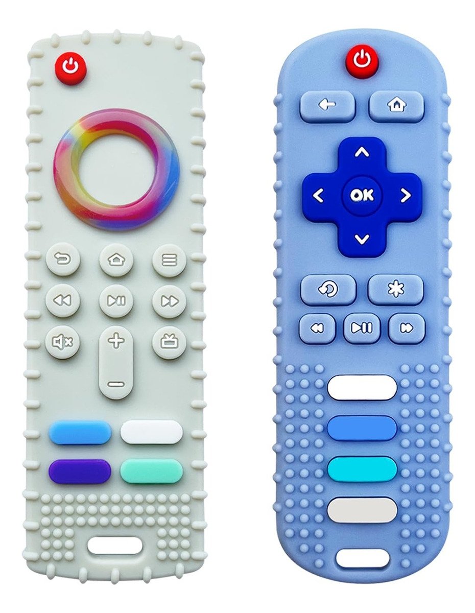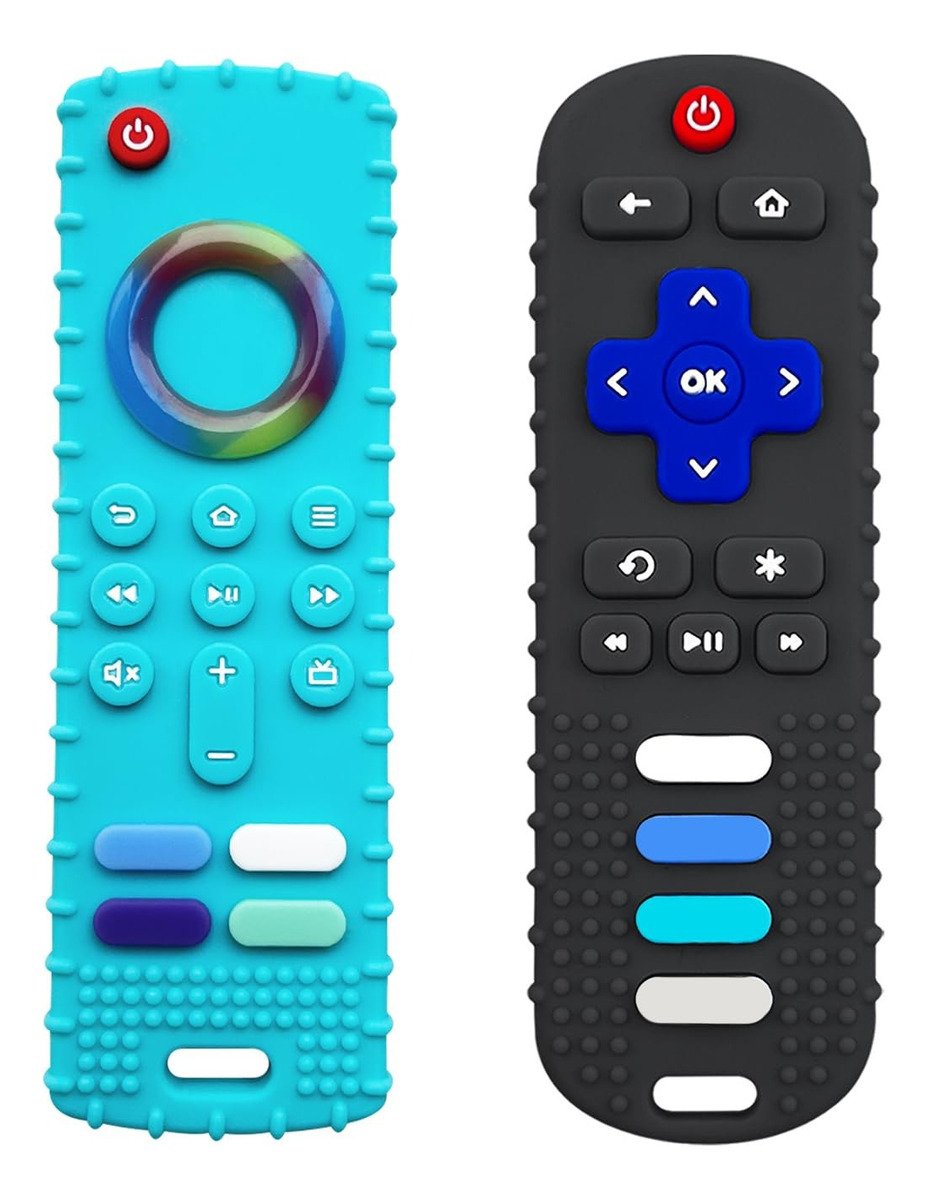 Mordedores De 2 Juguetes De Dentición De Silicona Para Bebés Color Verde Y Negro Remotos De Tv