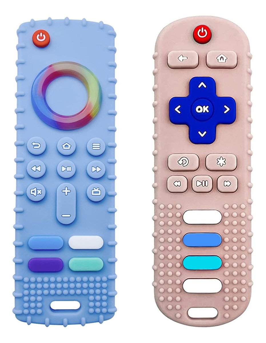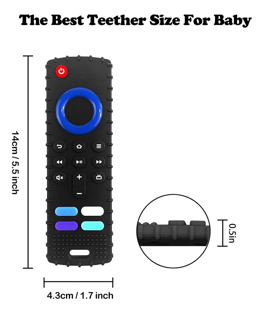 Tamaño perfecto: es lo suficientemente suave y flexible para que no dañe las encías tiernas del bebé mientras el bebé usa este juguete de dentición. El mejor tamaño de mordedor para bebé, es perfectamente pequeño, por lo que no es de gran tamaño. Estos son simplemente adorables. Se ven tan similares a un control remoto que estoy seguro de que cualquier bebé que juegue con el control remoto estará feliz con estos mordedores. Hay muchos golpes, protuberancias y crestas para que tu pequeño se aleje.