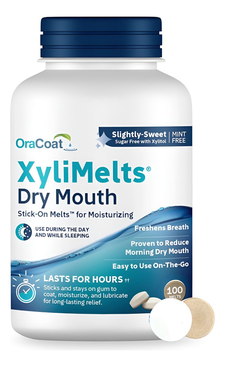 XyliMelts para boca seca utiliza tecnología patentada de disco adherido para liberar lentamente 550 mg de xilitol, estimulando el flujo de saliva y refrescar el aliento. El sabor ligeramente dulce y sin menta garantiza un sabor suave y agradable.