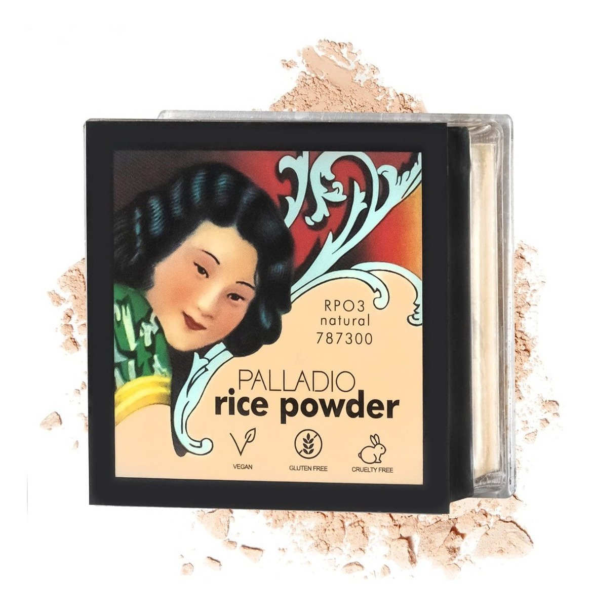 POLVO DE ARROZ ABSORBENTE DE ACEITE: Utilizado para la belleza y el cuidado de la piel durante generaciones, el polvo de arroz es conocido por su capacidad para absorber el aceite y ayudar a que el maquillaje dure más tiempo. Palladio tiene una línea de productos de polvo de arroz, que incluye pañuelos secantes de papel de arroz, polvo e imprimación.