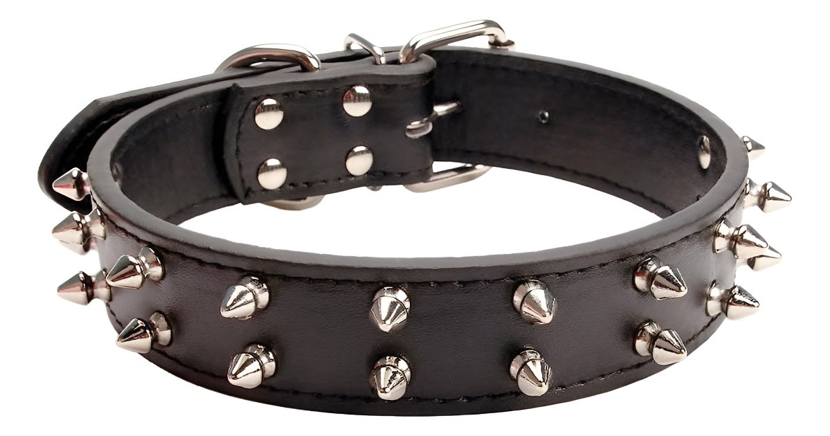 Aolove Collar Clásico De Cuero Con Púas Para Perros Mediano
