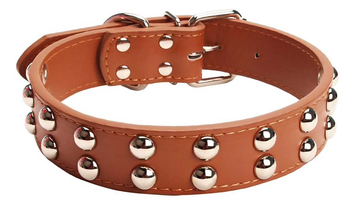 Aolove Collar Marrón Clásico De Cuero Con Púas Para Perros