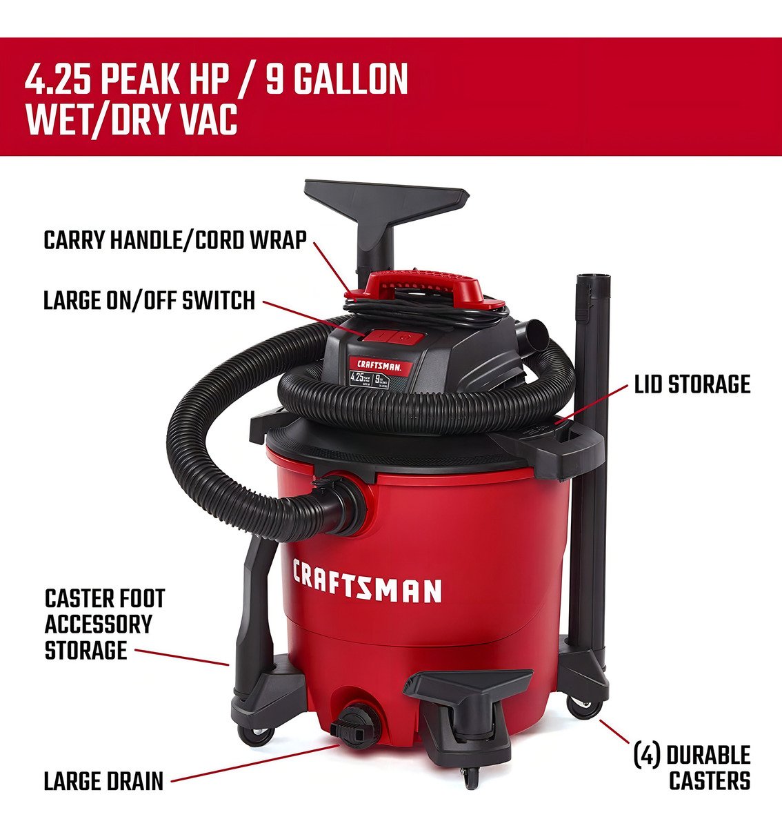 Aspiradora Craftsman Uso Rudo 9 Gal O F E R T A + Accesorios Color Rojo