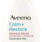 6 onzas líquidas de limpiador facial espumoso Aveeno Calm + Restore Redness Relief con fiebre calmante para pieles sensibles para ayudar a reducir la apariencia de enrojecimiento en la cara.