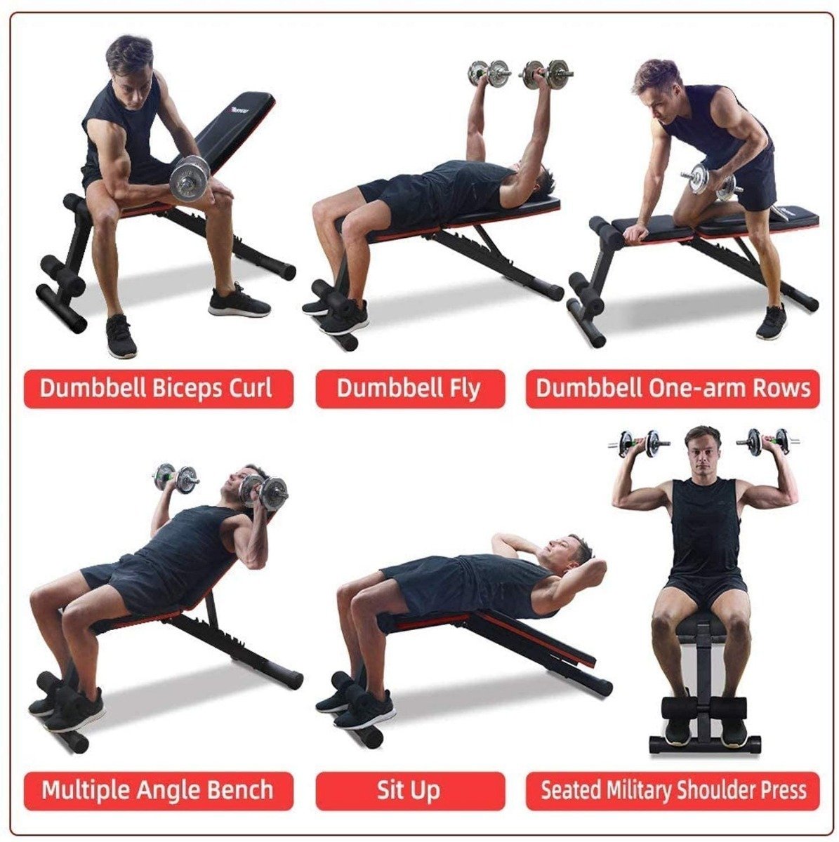 Diseño totalmente ajustable: diseñado con 7 posiciones de espalda para satisfacer todas tus necesidades al hacer entrenamientos, puedes realizar una serie de ejercicios de parte superior e inferior del cuerpo mientras incorporas mancuernas para alcanzar objetivos y construir o mantener los músculos.