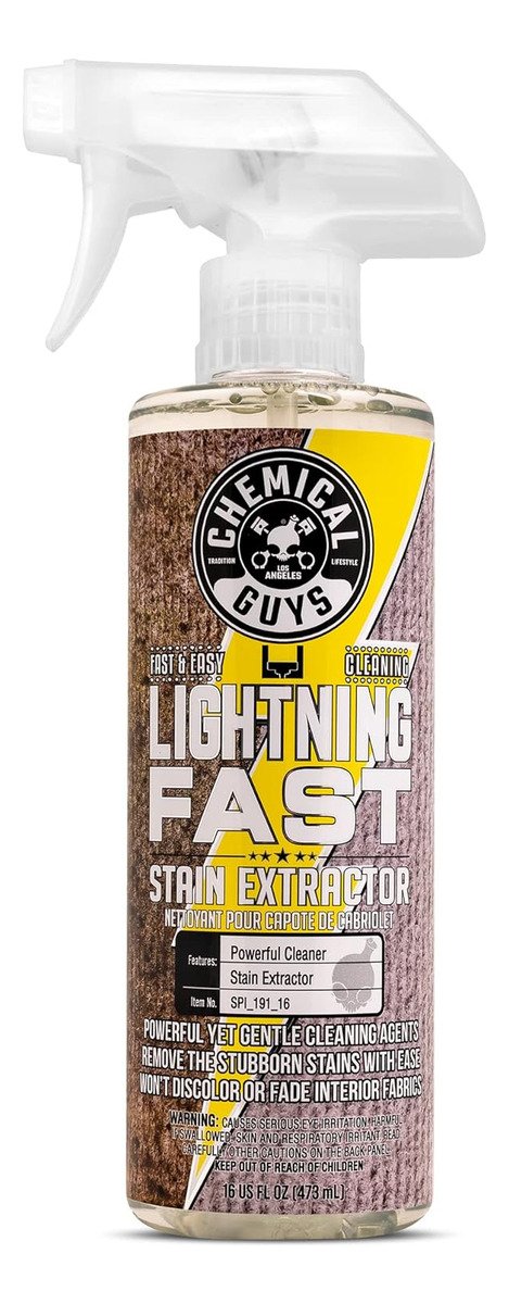 Lightning Fast es un extractor de manchas súper potente que penetra profundamente, disuelve las manchas difíciles, luego emulsiona y levanta la suciedad y los desechos a la superficie para restaurar la tela, la tapicería y la alfombra.