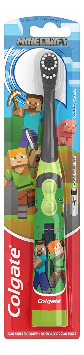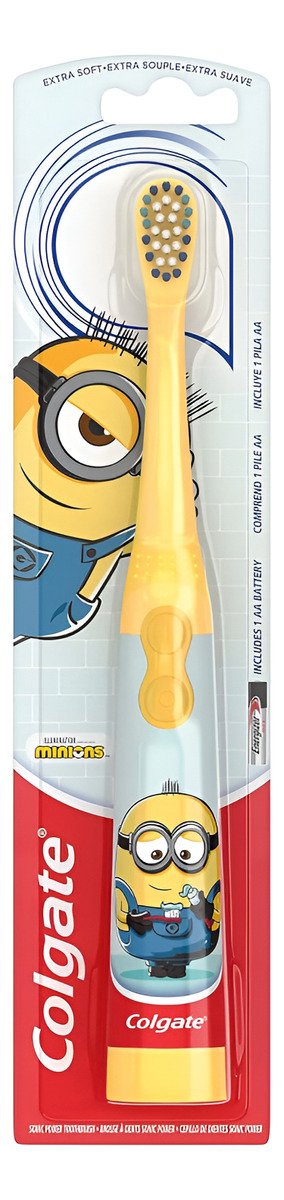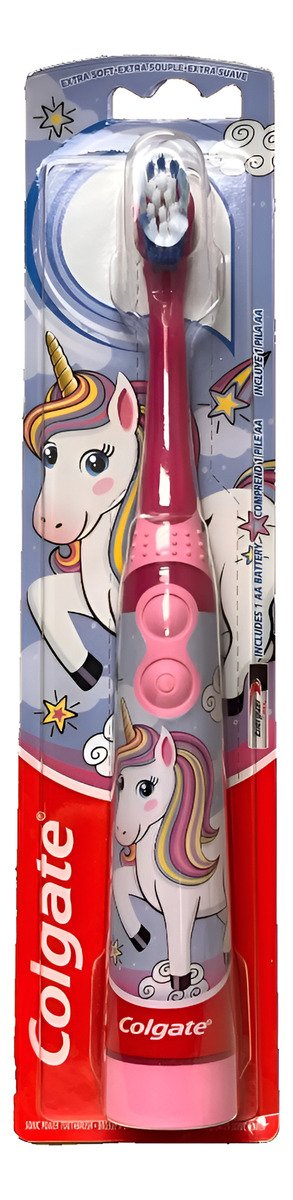 – Este cepillo de dientes Colgate alimentado por batería para niños tiene un cabezal de cepillo pequeño y vibrante con cerdas extra suaves que limpia los dientes y barre la placa