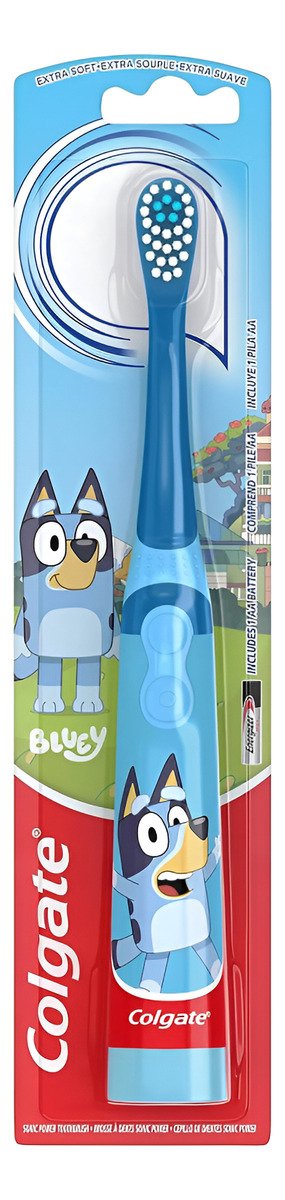 – Incluye un (1) cepillo de dientes Colgate Kids con batería AA incluida, cepillo de dientes Bluey para niños
