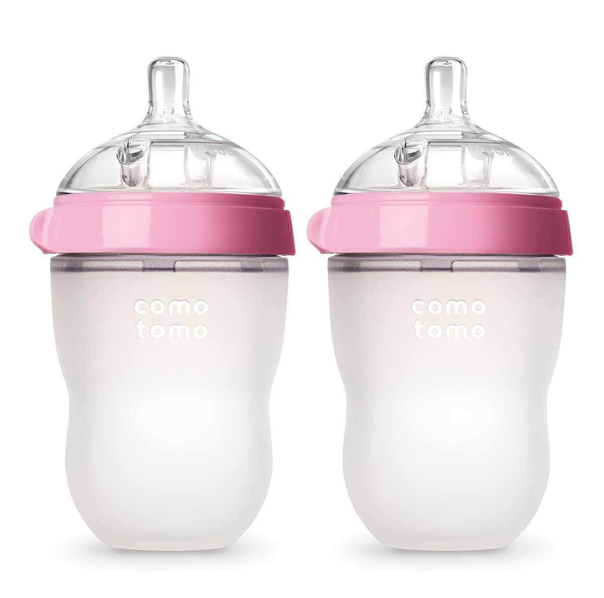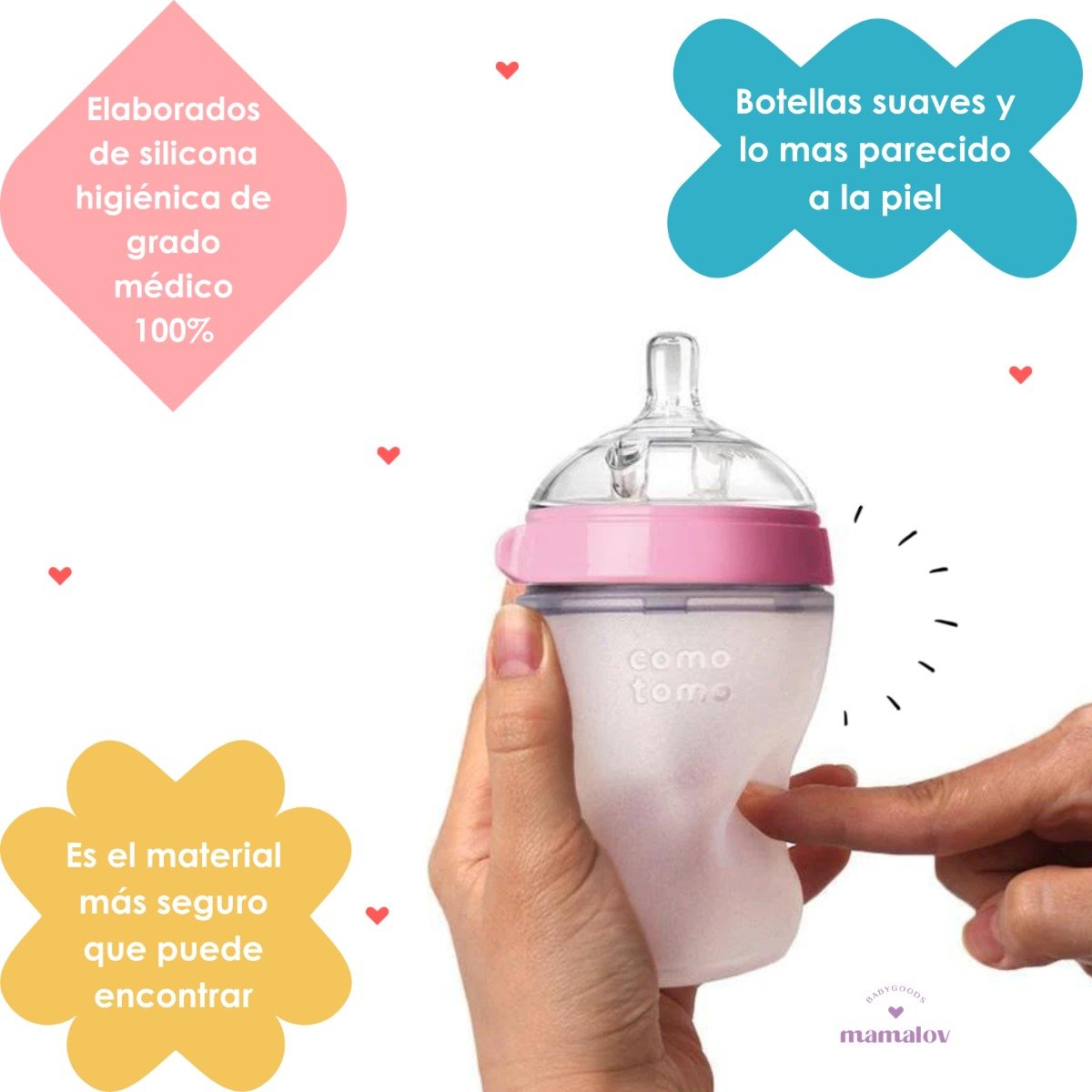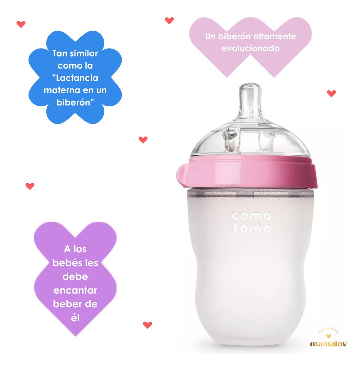 2 Biberónes Comotomo Cuello Ancho Fácil Limpieza 8oz Rosa