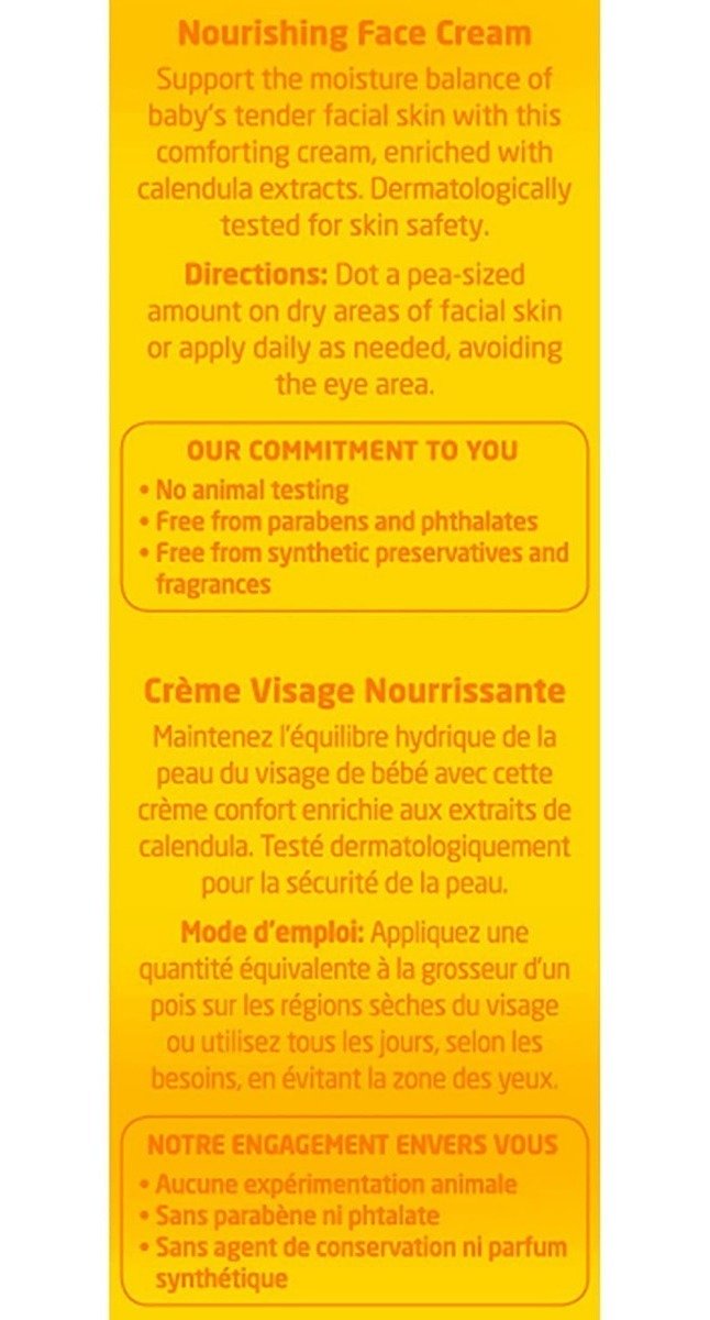 Humectación suave para la piel expuesta del bebé con extractos de caléndula y una ligera mezcla de aceites nutritivos. Esta crema reconfortante deja la cara del bebé aterciopelada