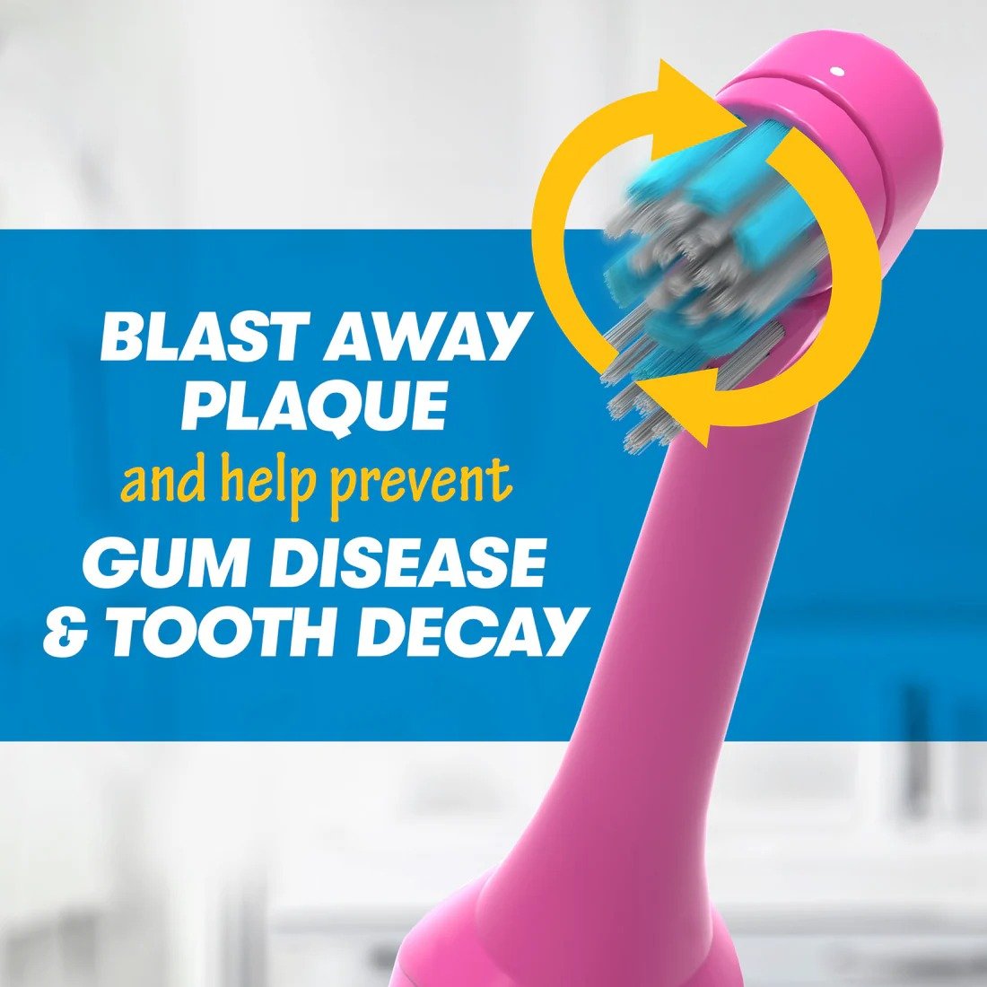 TAMAÑO PARA NIÑOS: El cabezal de cepillo de dientes giratorio compacto está diseñado para facilitar la limpieza de las áreas de difícil acceso de la boca. La eliminación de la placa ayuda a prevenir la enfermedad de las encías y la caries dental.