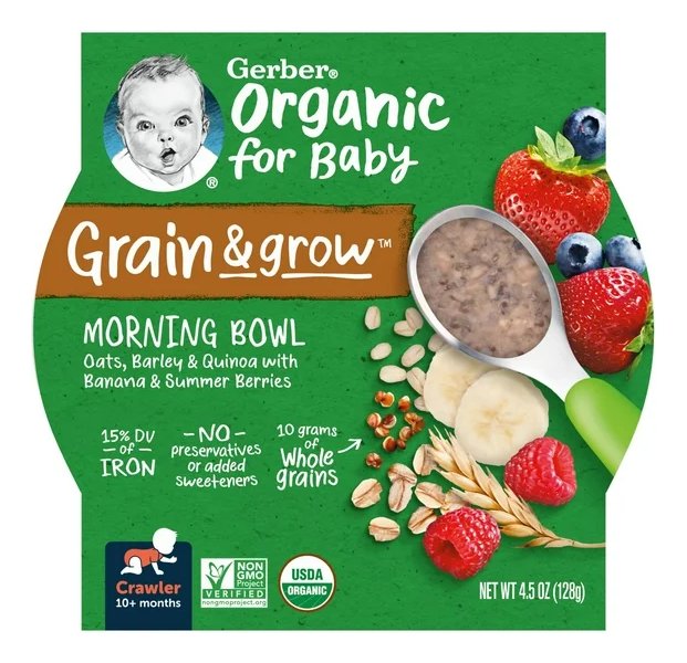 Gerber Orgánico te ofrece la nutrición que tu bebé necesita, combinada con el sabor delicioso que les encanta. Este puré está elaborado con ingredientes orgánicos cuidadosamente seleccionados, como avena integral, quinua roja, banana, arándanos, fresas y frambuesas.
