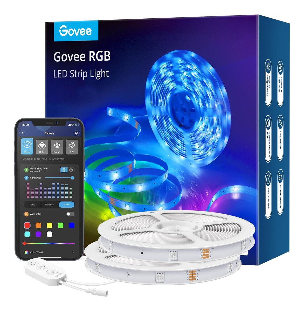 Sincronización de música: Un micrófono incorporado permite que la iluminación de la tira LED se sincronice con cualquier tipo de música. Utiliza nuestra aplicación Govee Home o caja de control y mira con alegría mientras tus tiras de luces LED bailan con tus canciones favoritas.