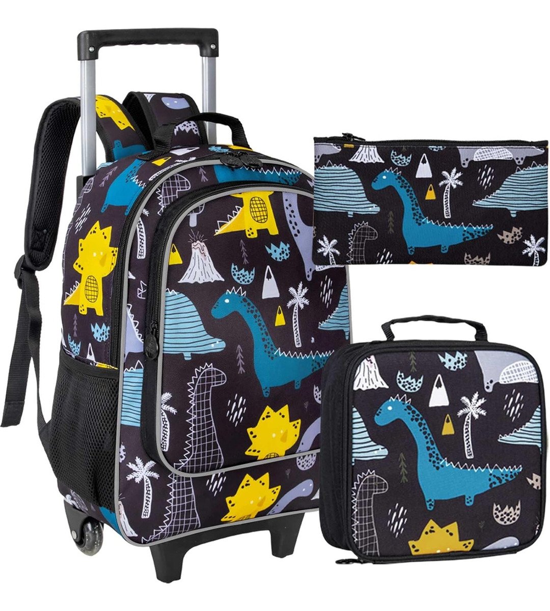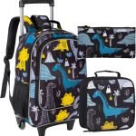 Gxtvo Mochila Para Niños Con Ruedas Enrollables Pack De 3 Piezas Color Negro Diseño De La Tela Dinosaurio