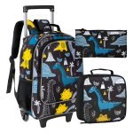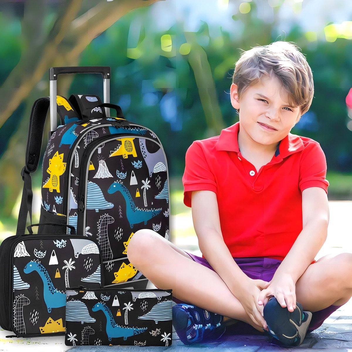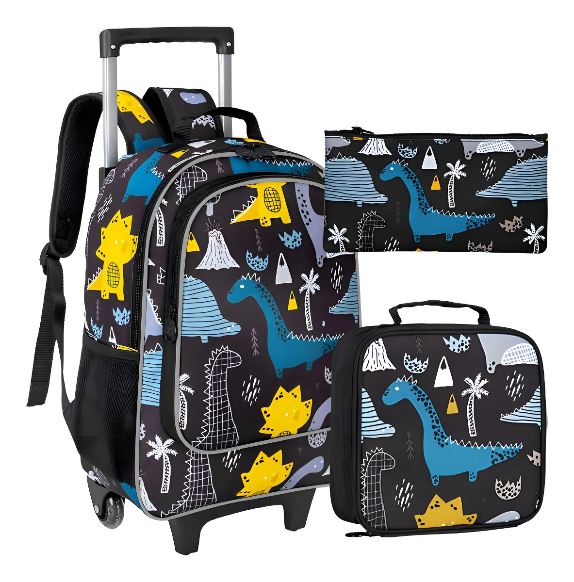 Gxtvo Mochila Para Niños Con Ruedas Enrollables Pack De 3 Piezas Color Negro Diseño De La Tela Dinosaurio