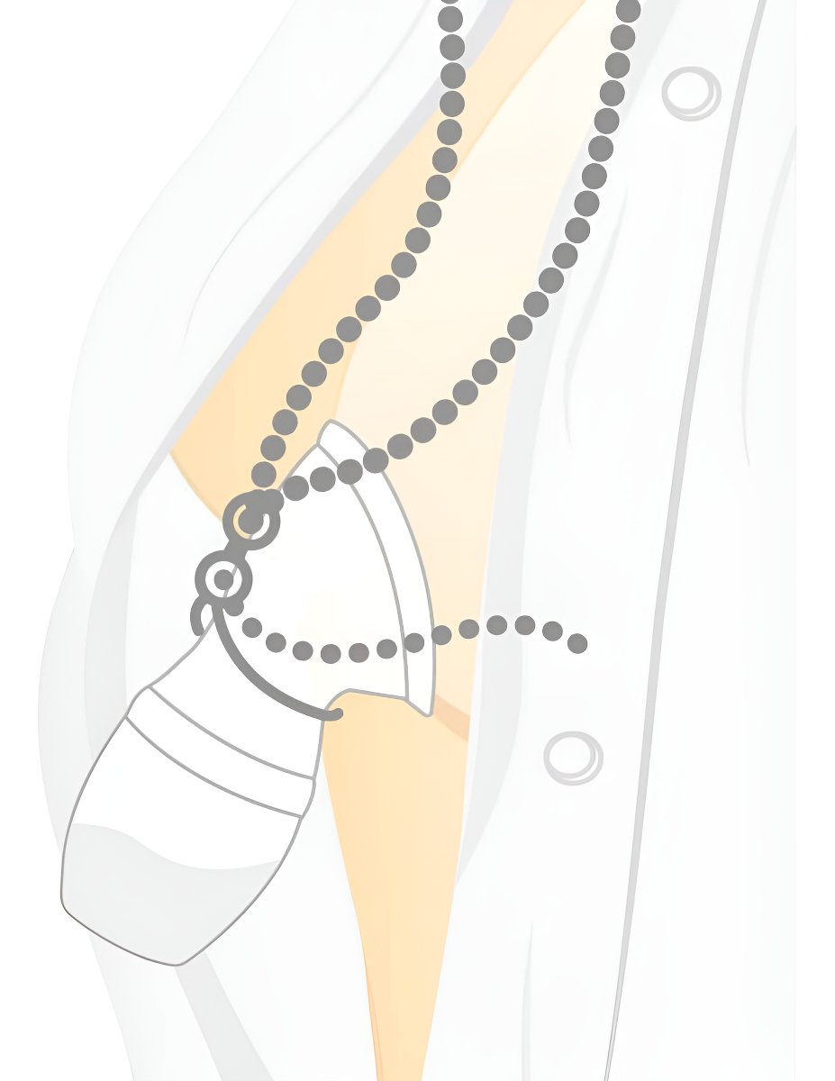 Uso: 1. Inserte su extractor de leche a través del bucle en el extremo de la correa, asegurándose de que se ajuste firmemente y de forma segura alrededor del cuello de la bomba.