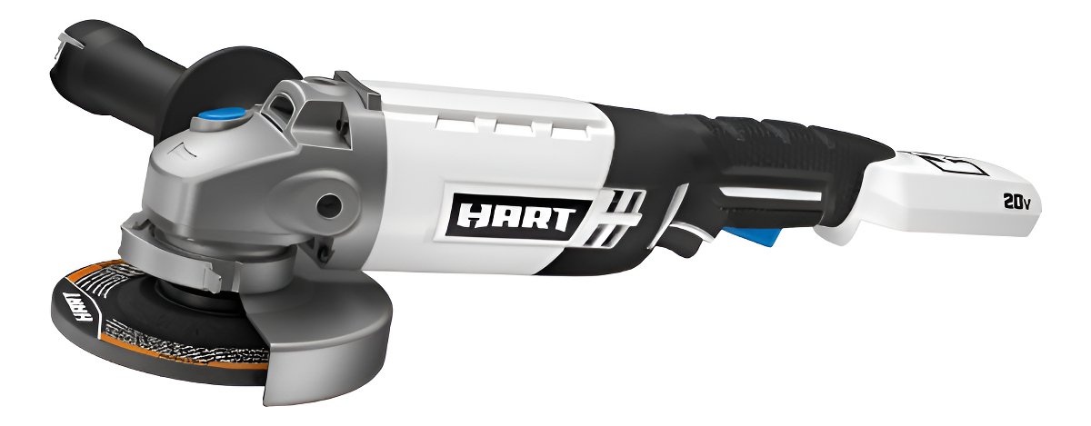 La amoladora angular HART de 20 V y 4-1/2 pulgadas está equipada con un motor de alto rendimiento que ofrece hasta 6500 RPM para aplicaciones que incluyen afilar cuchillas de cortacésped, eliminar el exceso de óxido de superficies metálicas y mucho más.