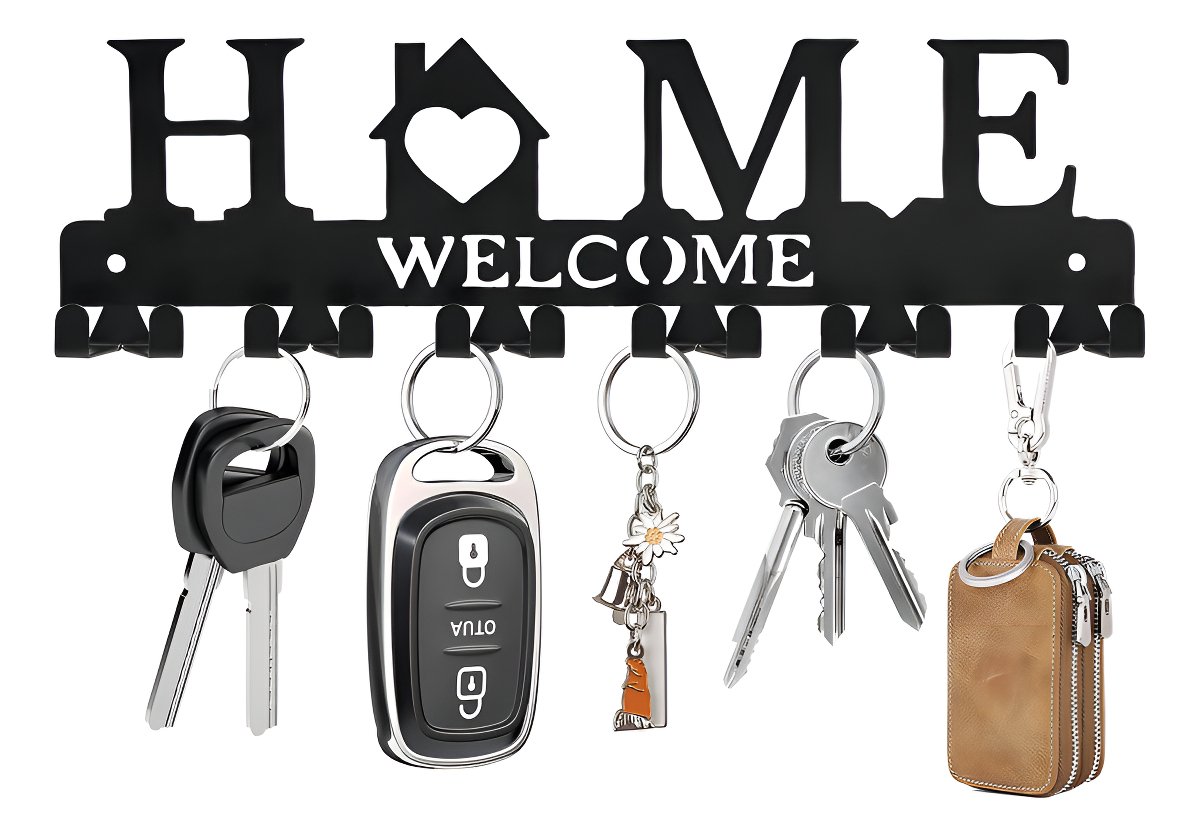 Decoración de pared: bonito diseño con palabras de bienvenida “Welcome Home” para decorar los ganchos para llaves, añade más calidez a la familia. Llavero adecuado para una amplia variedad de decoración del hogar, incluyendo diseños rústicos, de granja e incluso modernos. Se ve muy bien en la pared y reduce el desorden.