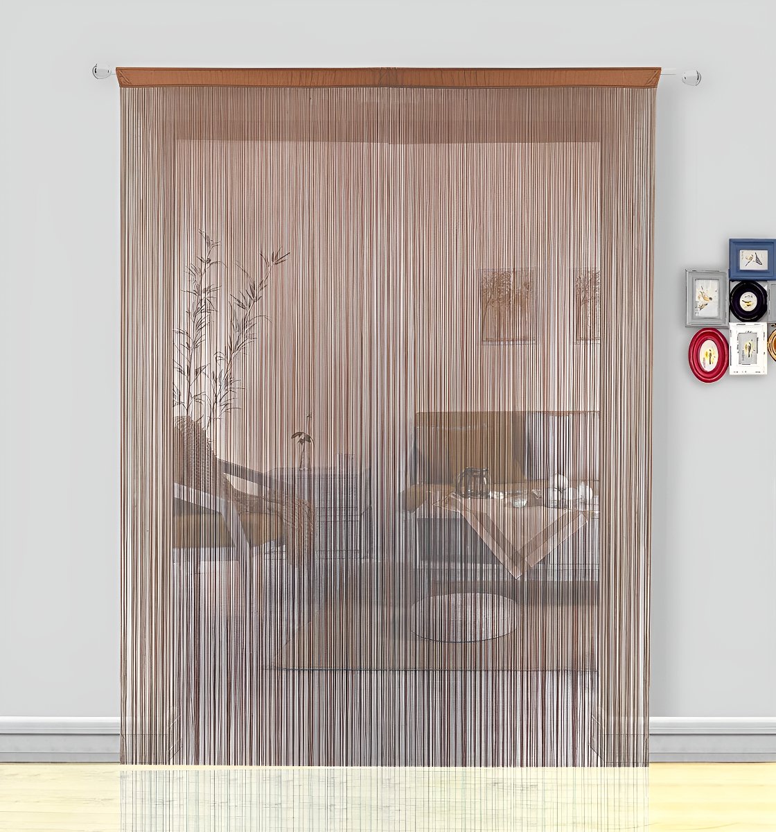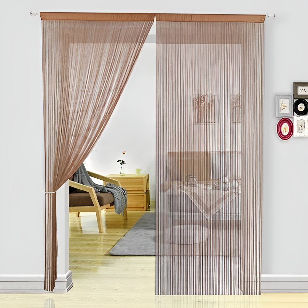 Hsylym Cortinas Para Puerta Con Flecos De Espaguetis Densos Color Marrón