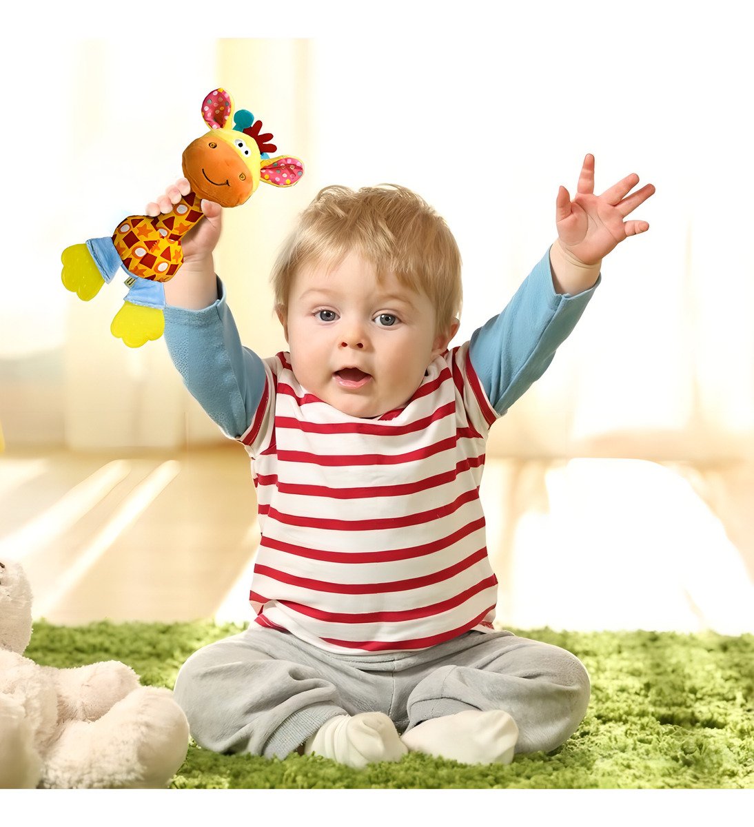 Huadada – Sonajero Jirafa Suave Bebés Con Mordedor Y Sonidos Color Amarillo