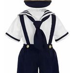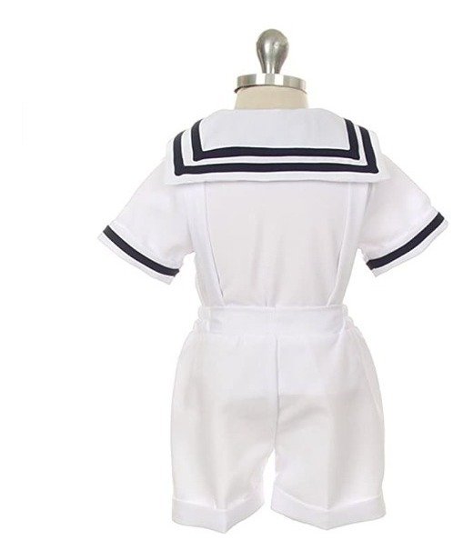 Adorable traje de marinero azul marino que incluye pantalones cortos azul marino con correa de fijación con botón de marinero color dorado, camisa blanca y franja de color azul marino, corbata de marinero azul marino y el sombrero de marinero a juego y adorable traje corto de marinero blanco que incluye pantalones cortos blancos con correa de fijación con botón de marinero azul marino de color dorado, camisa blanca y franja de color azul marino, corbata marinera azul marino y el sombrero marinero a juego