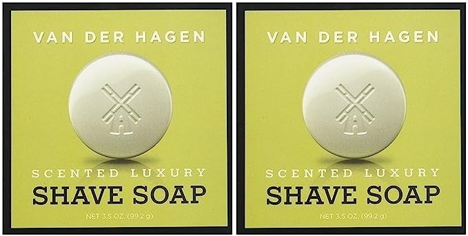 Incluye: 2 barras de jabón de afeitar con perfume Van Der Hagen para hombre de 99.2gr cada una.