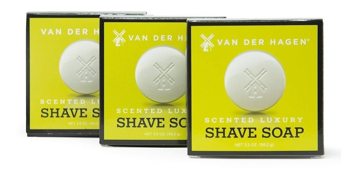 Incluye: 3 barras de jabón de afeitar con perfume Van Der Hagen para hombre de 99.2gr cada una.