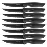 MIENTRAS OTROS CUCHILLOS DE COCINA A MENUDO TIENEN MANCHAS DE ÓXIDO DESPUÉS DE UN SOLO LAVADO, nuestro juego de cubiertos para carne está hecho de ACERO INOXIDABLE RESISTENTE A LA ÓXIDO para mantener sus hojas impecables y con el mejor rendimiento. APTO PARA LAVAVAJILLAS en la rejilla superior para una limpieza rápida y fácil. ¡SIN OXIDO, MANCHAS O PICADURAS!