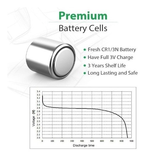 DURADERO Y AHORRO DE COSTOS: obtenga la batería CR1 / 3N de 5 piezas de células A de grado A, tenga una carga completa de 3 voltios, 170 mAh de alta calidad, 3 años de vida útil
