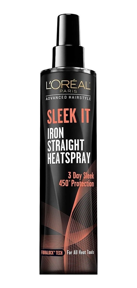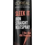 Sleek It de L’oreal ofrece una una protección térmica: Especialmente formulado para trabajar con cualquier herramienta de peinado de calor, protección térmica de 450 grados, nuestra fórmula única no solo ayuda a proteger de daños por calor, sino que calma el encrespamiento, sella el brillo, bloquea la humedad y las condiciones para un estilo elegante que dura 3 días.
