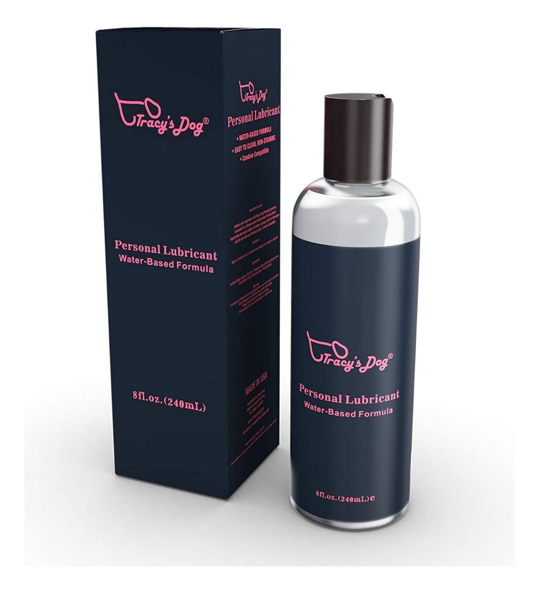 Compatible con juguetes y condones: el lubricante personal a base de agua de Tracy’s Dog es compatible con la mayoría de los materiales de juguetes, látex de caucho natural, poliuretano y condones de poliisopreno.