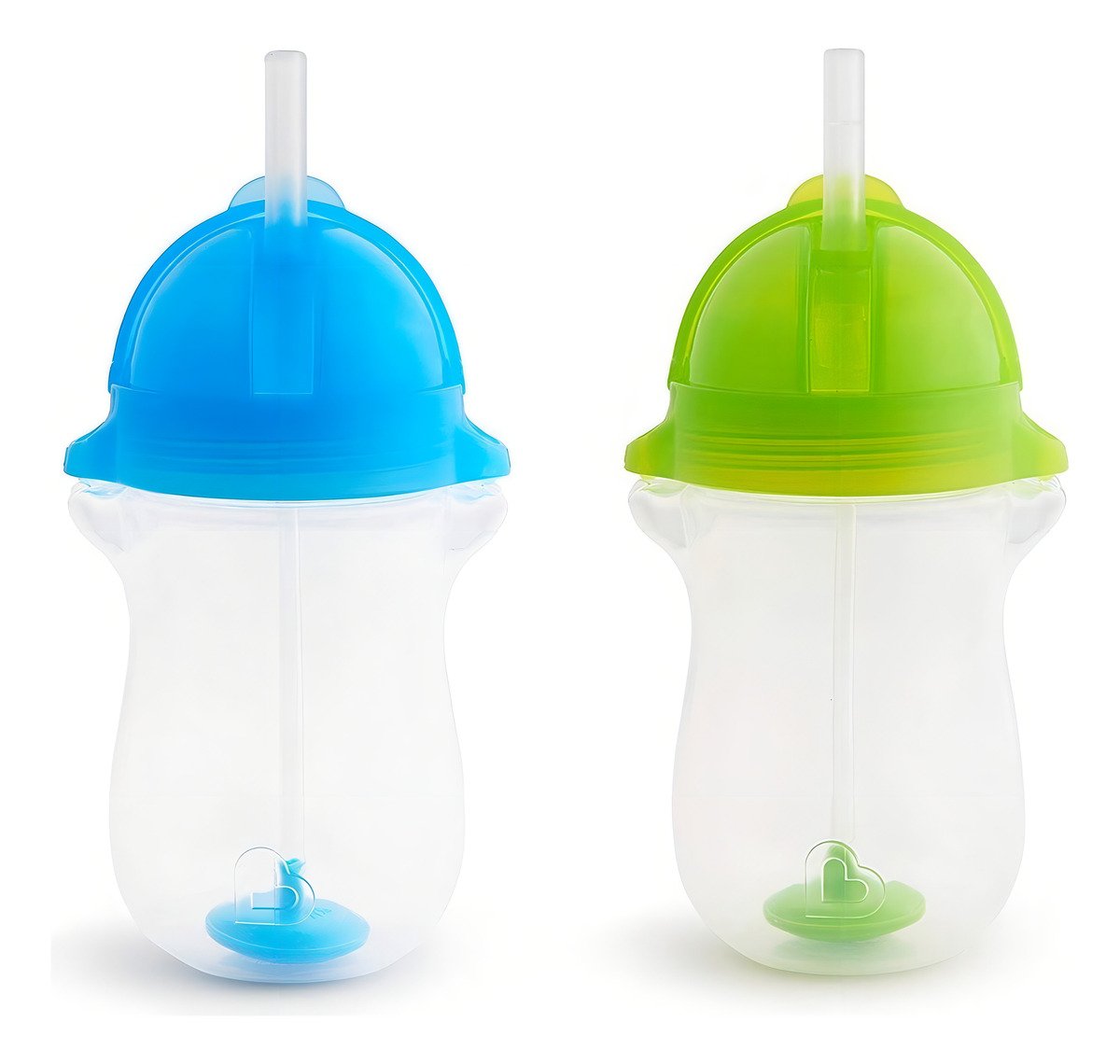 Munchkin Vaso Con Popote Antiderrame 10 Oz Para Bebe 2 Pzas Color Verde/azul