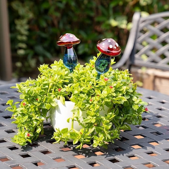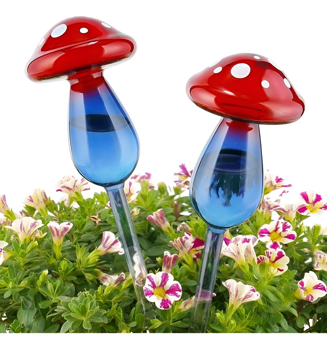 Nihome Mushroom Aqua Spike – Paquete De 2 Bombillas De Riego Color Rojo 2 Setas