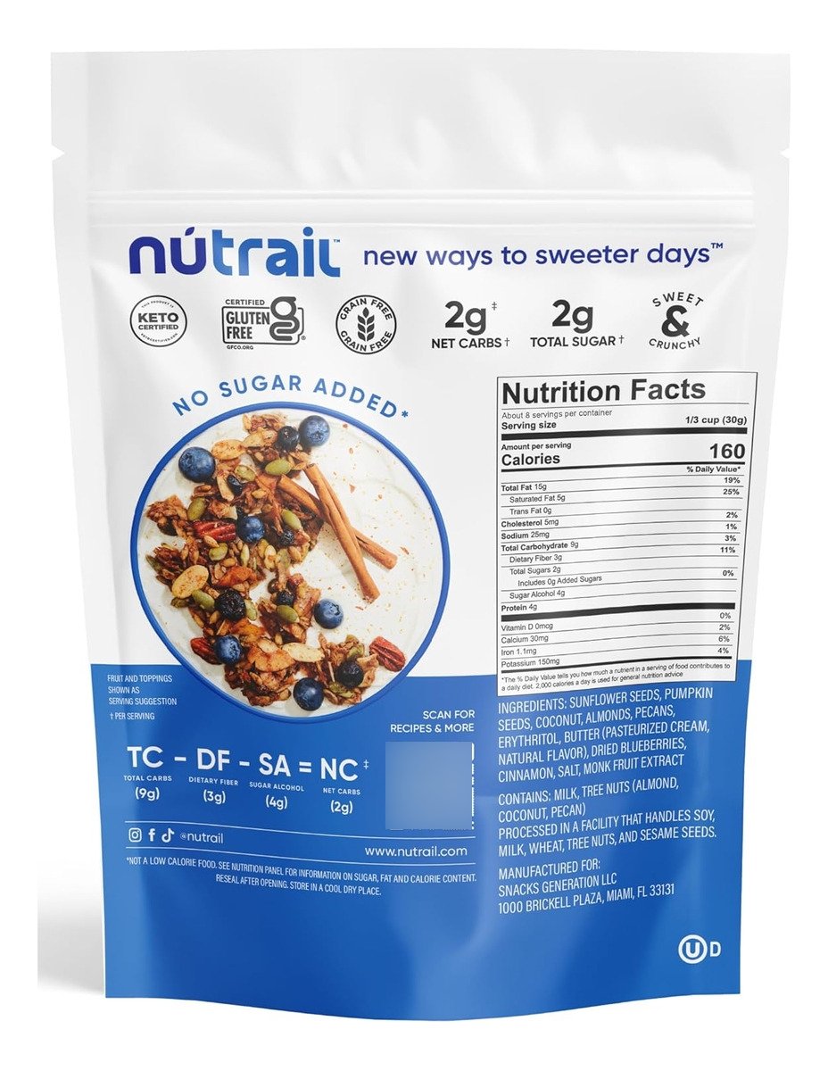 Nutrail Granola Saludable Keto Canela Y Arándanos 227g