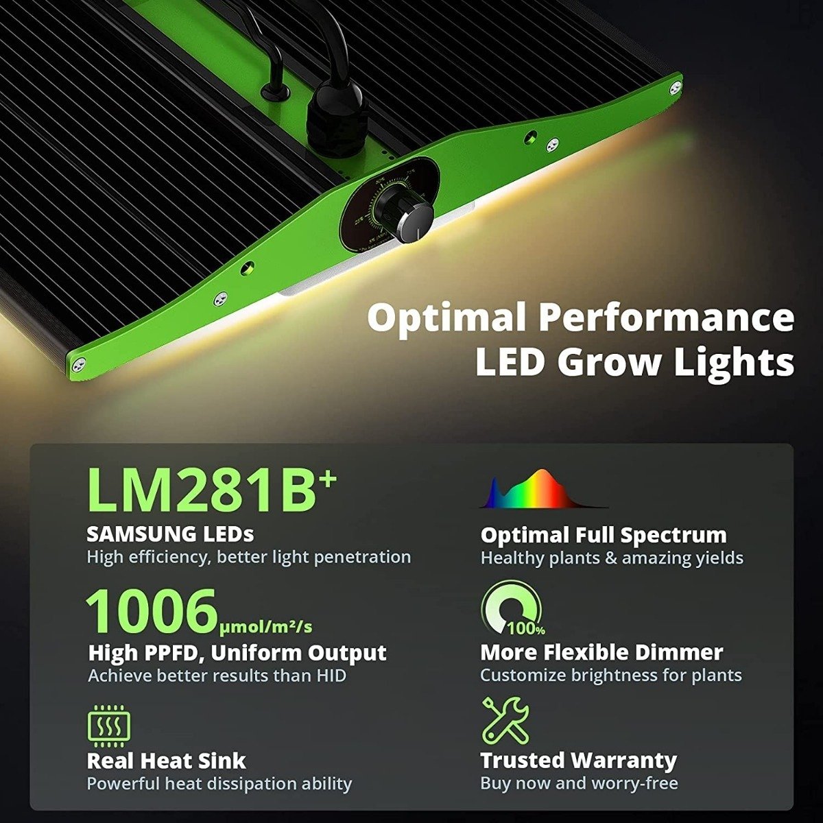 MENOR COSTO DE OPERACIÓN Y FUNCIÓN DE DIMMER: VIPARSPECTRA P1000 LED grow light ha adoptado la tecnología LED SMD más nueva para proporcionar un alto rendimiento PAR, alta eficiencia energética y una larga vida útil al tiempo que mejora la penetración de la luz. Se incluye una perilla de atenuación adicional para manipular el nivel de brillo de la luz, lo que permite la flexibilidad para obtener un rendimiento de crecimiento perfecto para cada fase de crecimiento.