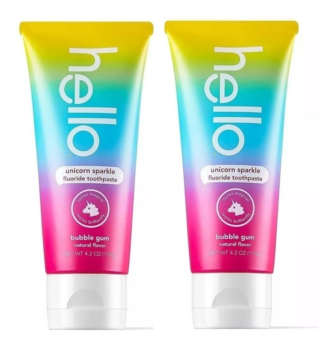 Di hola a la pasta dental de fluoruro brillante de unicornio que sabe como arcoíris y sol y funciona muy bien.