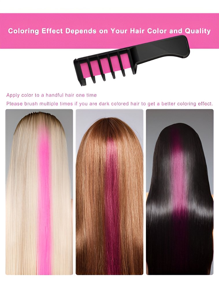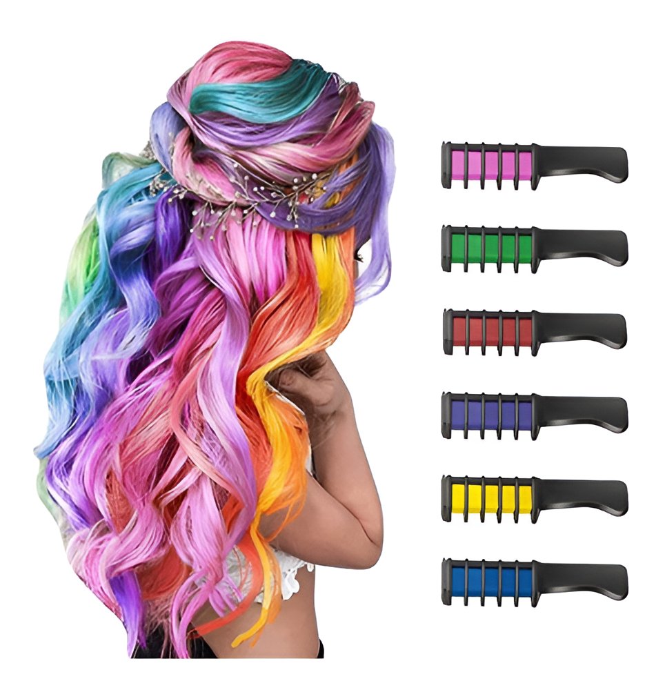 Peine De Tinta Temporal Para El Cabello, Lavable 6 Colores Tono Multicolor