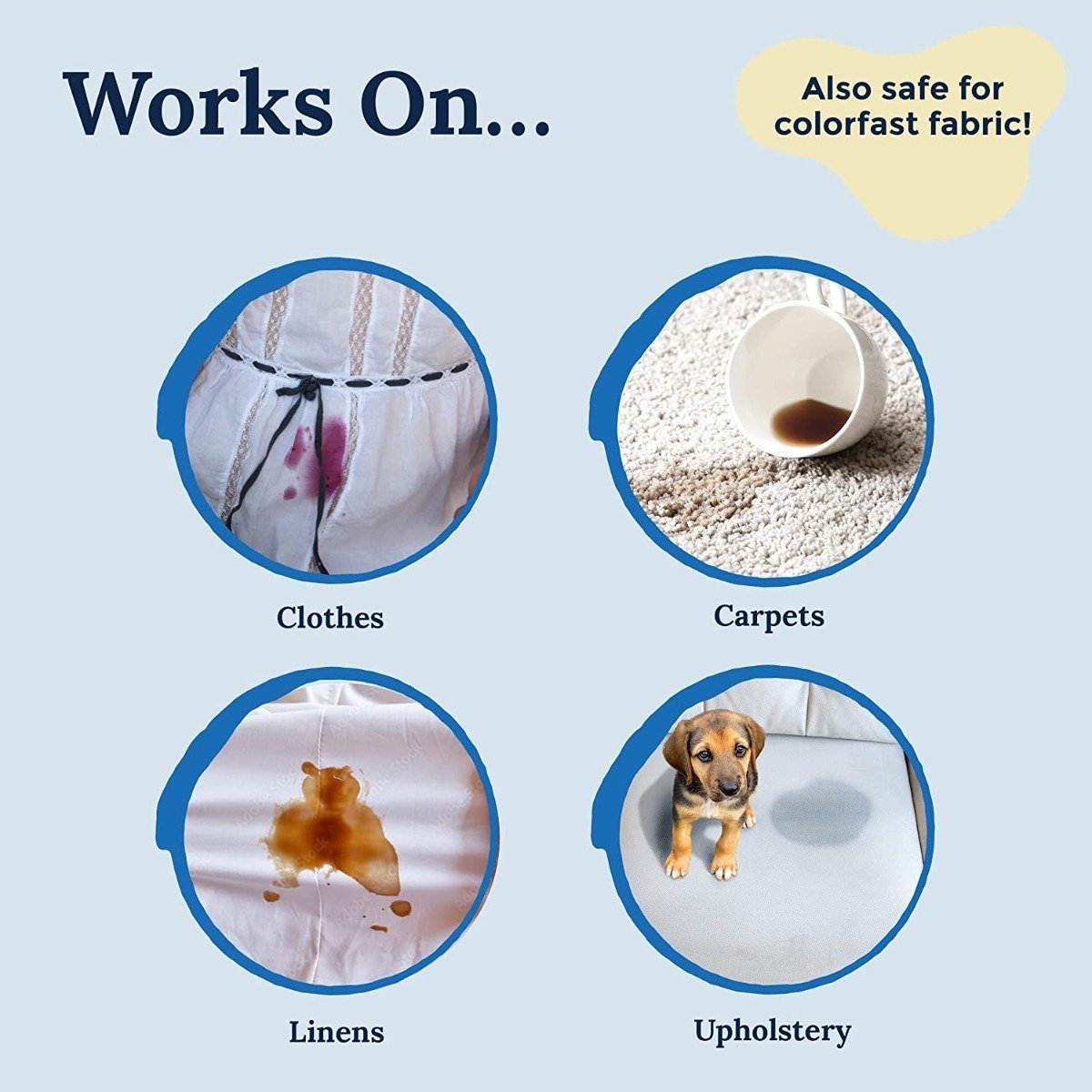 Funcionamiento potente y rápido: esta fórmula de grado comercial es el removedor de manchas perfecto para ropa, baberos, alfombras, automóviles, muebles, tapicería y mucho más.