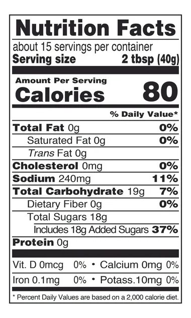 Azúcar, agua, vinagre destilado, salsa de soja (agua, trigo, soja, sal, alcohol, vinagre, ácido láctico), almidón de maíz modificado, sal, pimiento rojo triturado, especias, goma xantana, aroma natural, ácido láctico, proteína vegetal hidrolizada (soja), aceite de naranja.