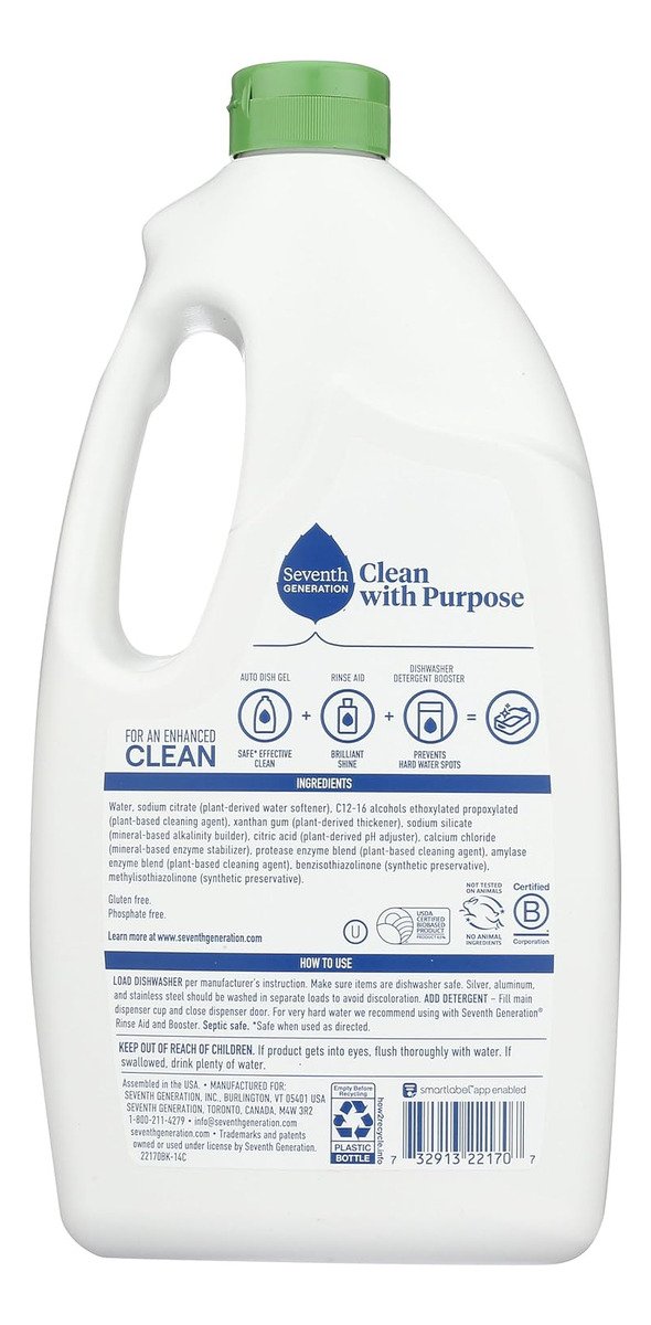 Descubre la eficacia del Lavavajillas En Gel Aroma Libre de Seventh Generation, diseñado para ofrecer una limpieza profunda y efectiva en cada lavado. Su fórmula líquida se adapta perfectamente a tu lavavajillas, garantizando que tus utensilios y vajilla queden impecables, sin dejar residuos ni fragancias que puedan alterar el sabor de tus alimentos.