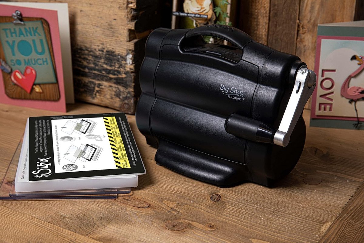 Máquina de troquelado versátil: la máquina troqueladora plegable Sizzix Big Shot cuenta con una superficie de corte y un mango que se pliega perfectamente. Perfecto para un fácil almacenamiento y creación sobre la marcha. Esta máquina de troquelado y estampado en relieve es la herramienta perfecta para una variedad de actividades creativas para todos, desde principiantes hasta expertos. Los compartimentos de almacenamiento integrados mantienen tus troqueles delgados y herramientas favoritas a mano.