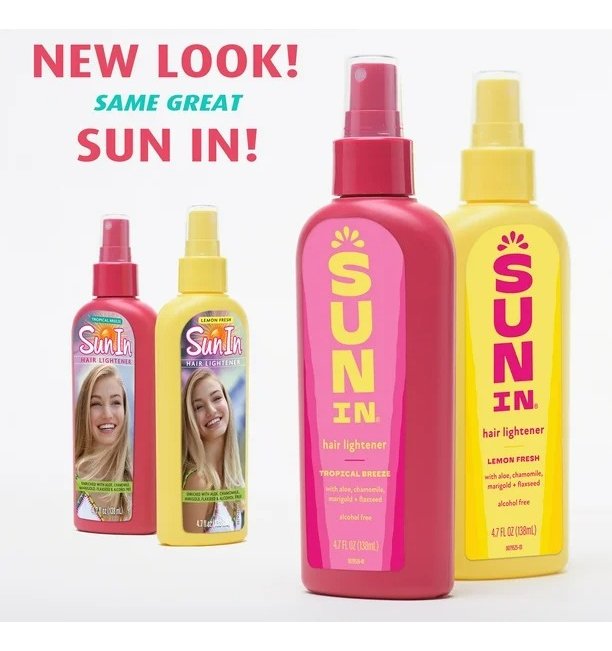 ESTILO RUBIO BAÑADO POR EL SOL: Rocía tu cabello con Sun-In antes de secar y peinar para ese look veraniego bañado por el sol. Aclara tus reflejos naturales y deja tu cabello con un olor cítrico, fresco y brillante.