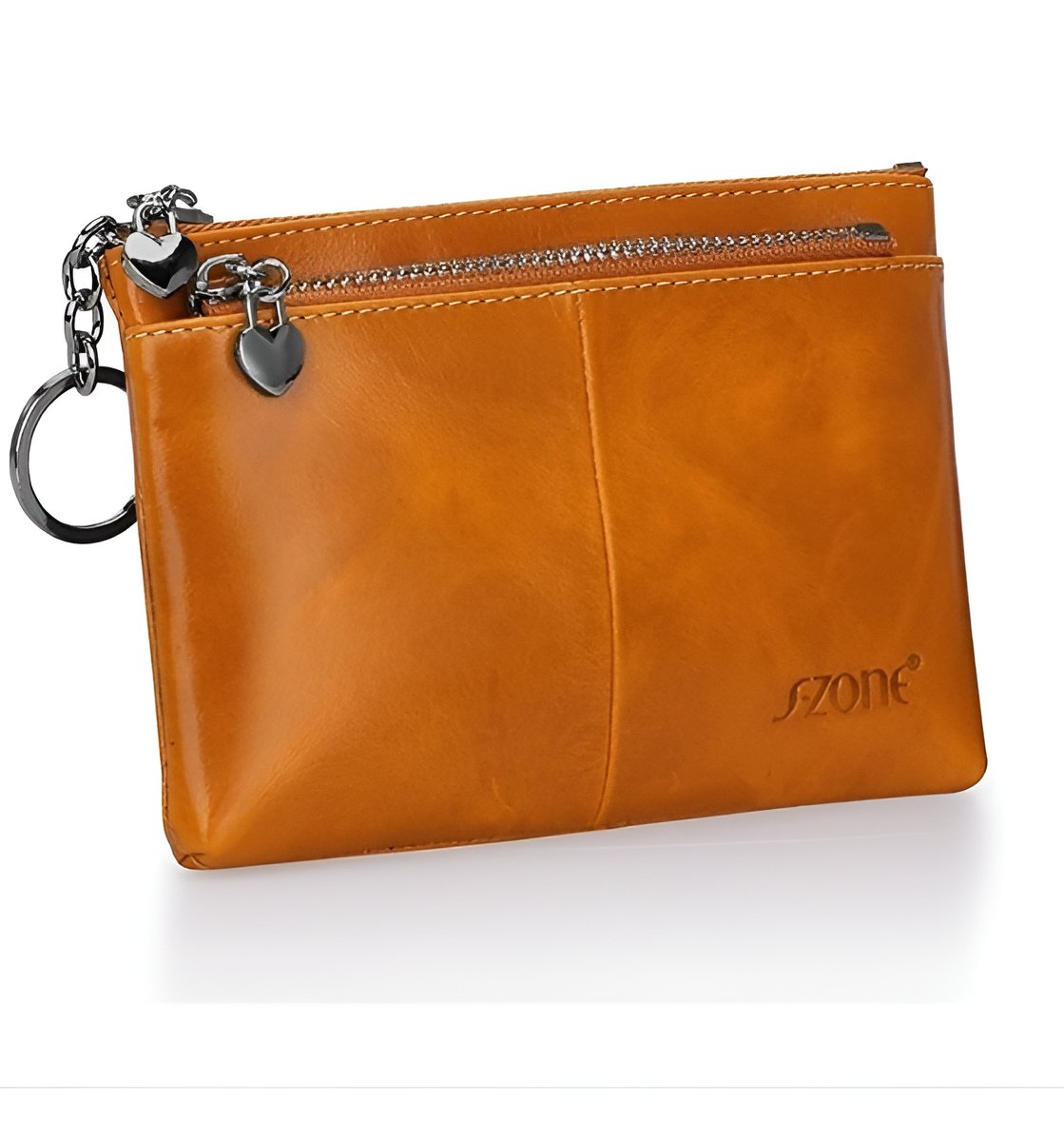 Szone Womens Genuine Leather Triple Cremallera Monedero Pequ Color Caramelo Diseño De La Tela N/a