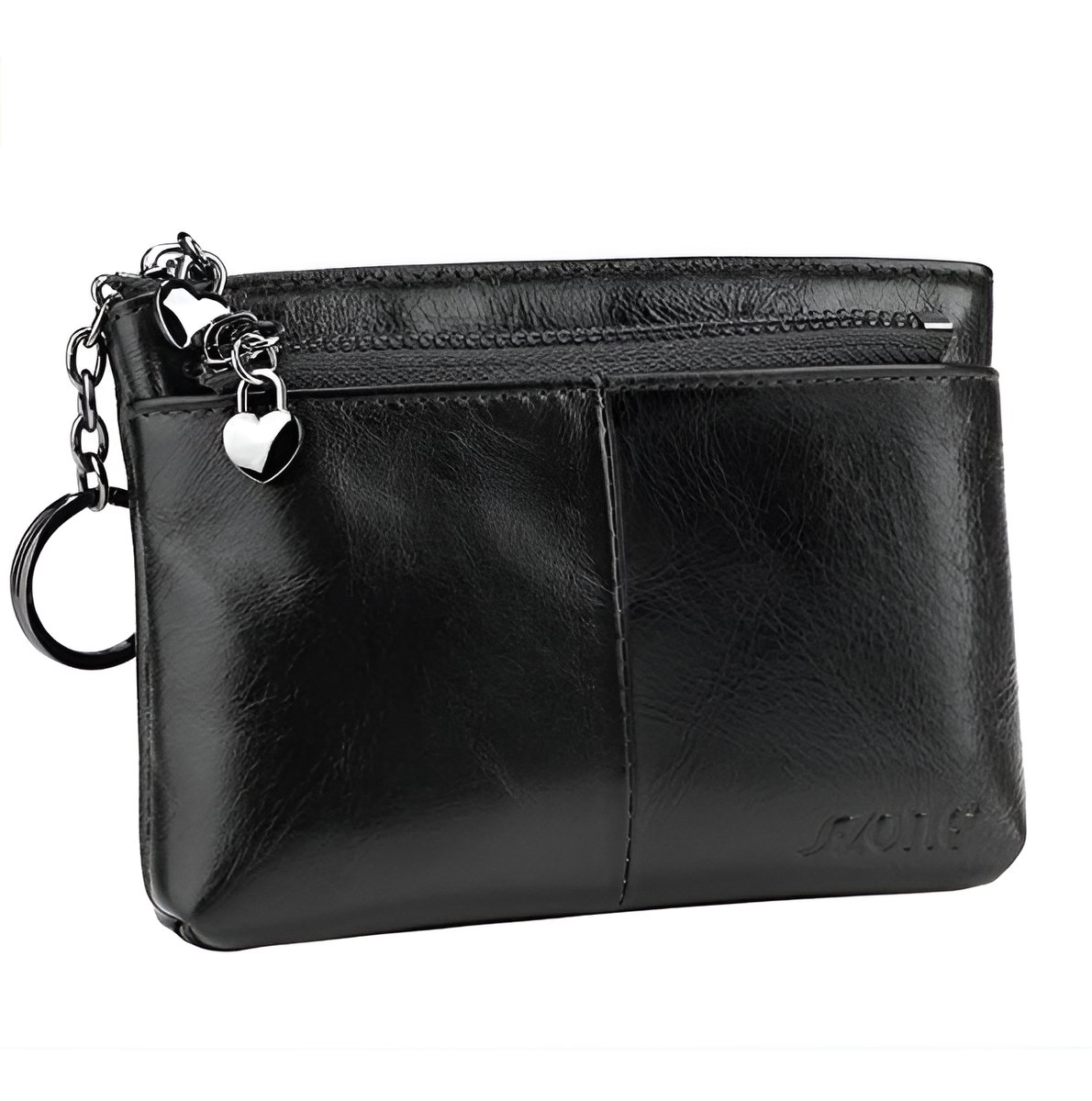SZONE Womens Genuine Leather Triple Cremallera Monedero pequeño Monedero Titular de la tarjeta con llavero