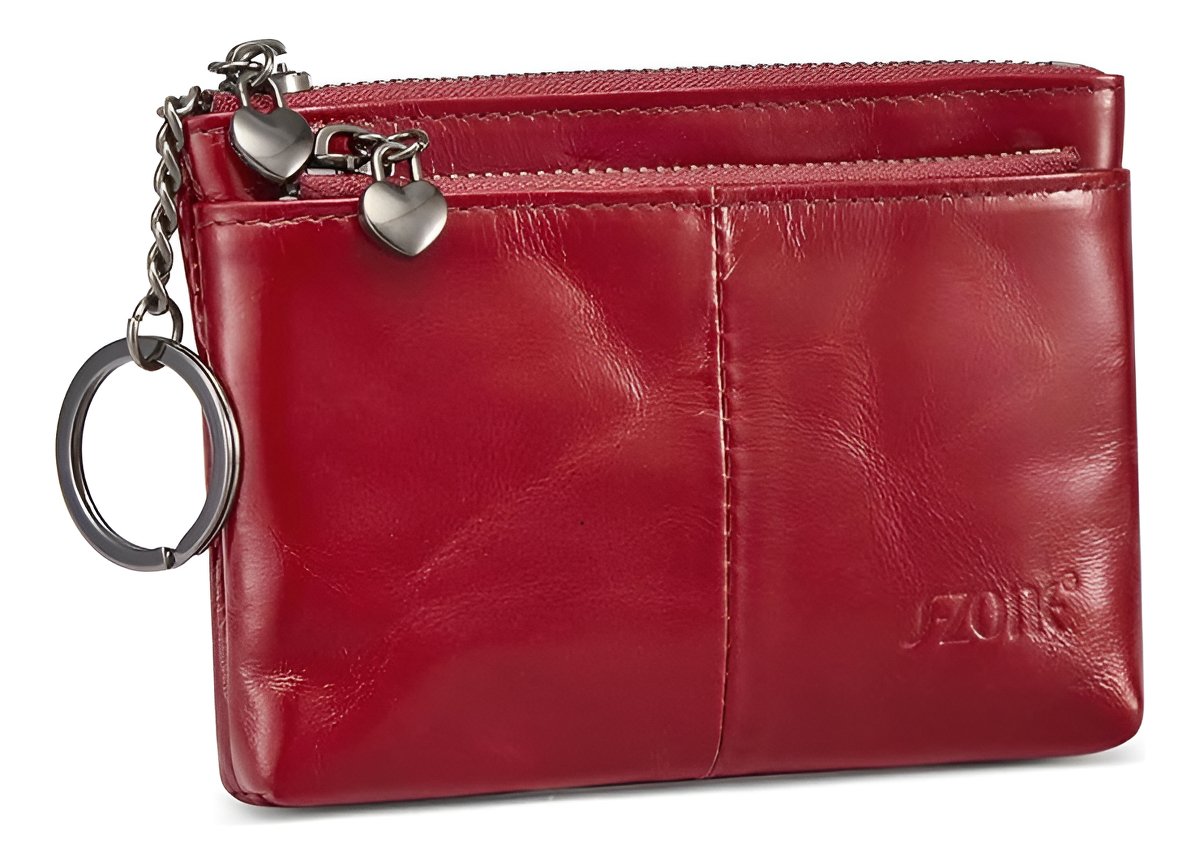 Szone Womens Genuine Leather Triple Cremallera Monedero Pequ Color Rojo Diseño De La Tela Wine Red
