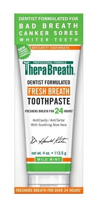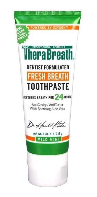 TheraBreath Fresh Breath Toothpaste with Fluoride está formulado por dentistas para refrescar el aliento y prevenir las caries durante todo el día y toda la noche, ¡tanto para niños como para adultos!