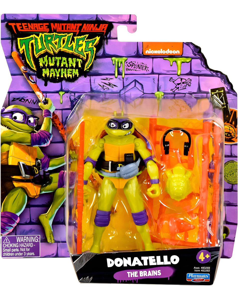 Tortuga Turtles Mutant Mayhem figura con accesorios Donatello.