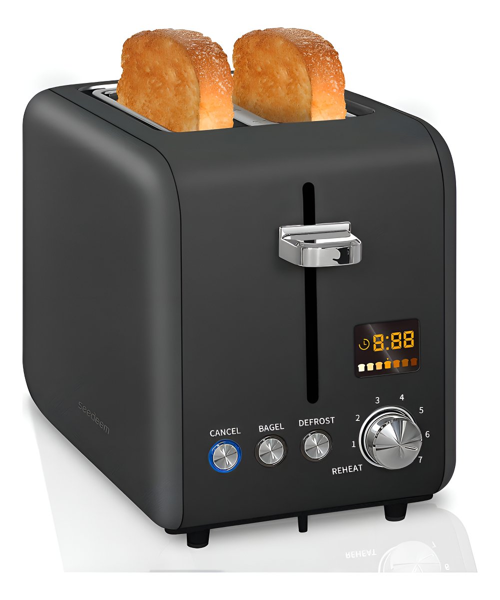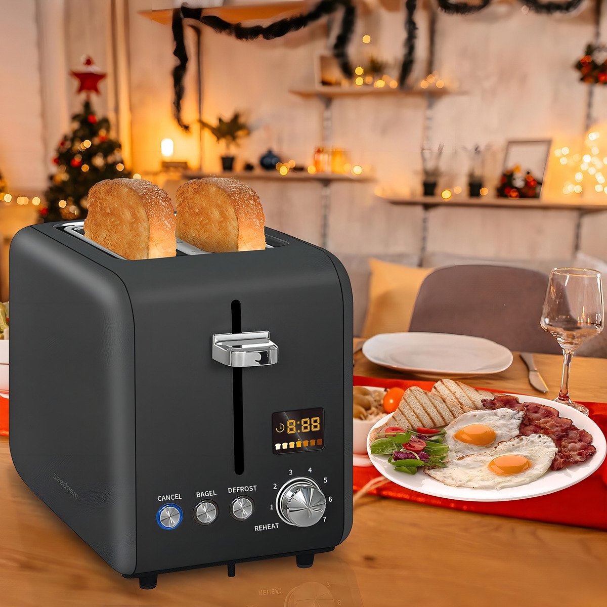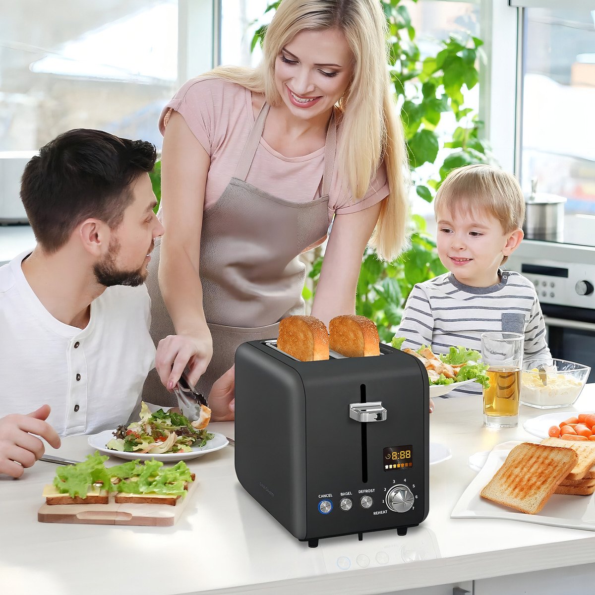Tostadora De Pan De 2 Rebanadas, Inoxidable Con Pantalla Lcd Color Metálico Oscuro